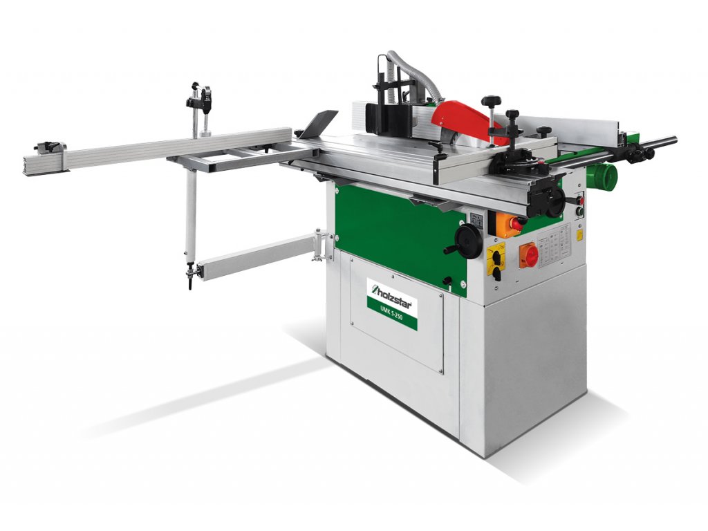 Predstavujeme Vám viacúčelový drevoobrábací stroj UMK 5-250 (400 V) - dokonalého pomocníka pre všetky Vaše projekty. Tento stroj je kombináciou na hobľovanie, rezanie, frézovanie a voliteľne s dlabacím zariadením, čo z neho robí skutočného všestranného umelca vo Vašej dielni.