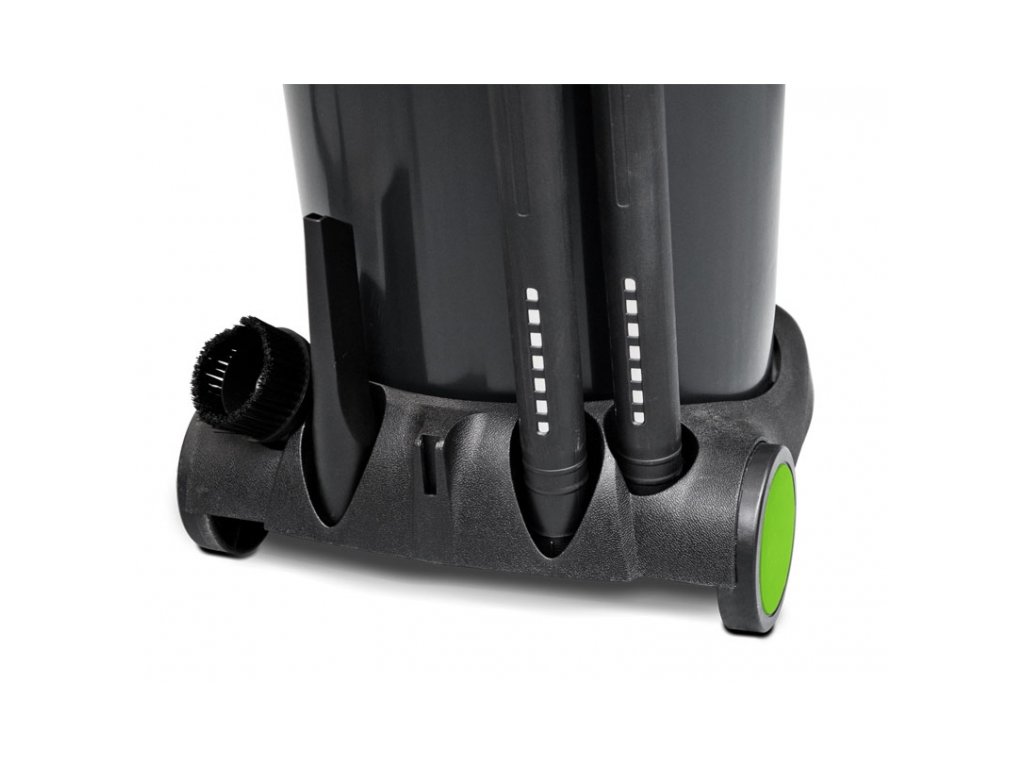 Vysávač na vysávanie prachu a iných pevných častíc s nerezovou nádobou. Vstavaná zásuvka na pripojenie elektrického náradia s automatickým spustením pri zapnutí náradia. S automatickým elektromagnetickým oklepom filtra.