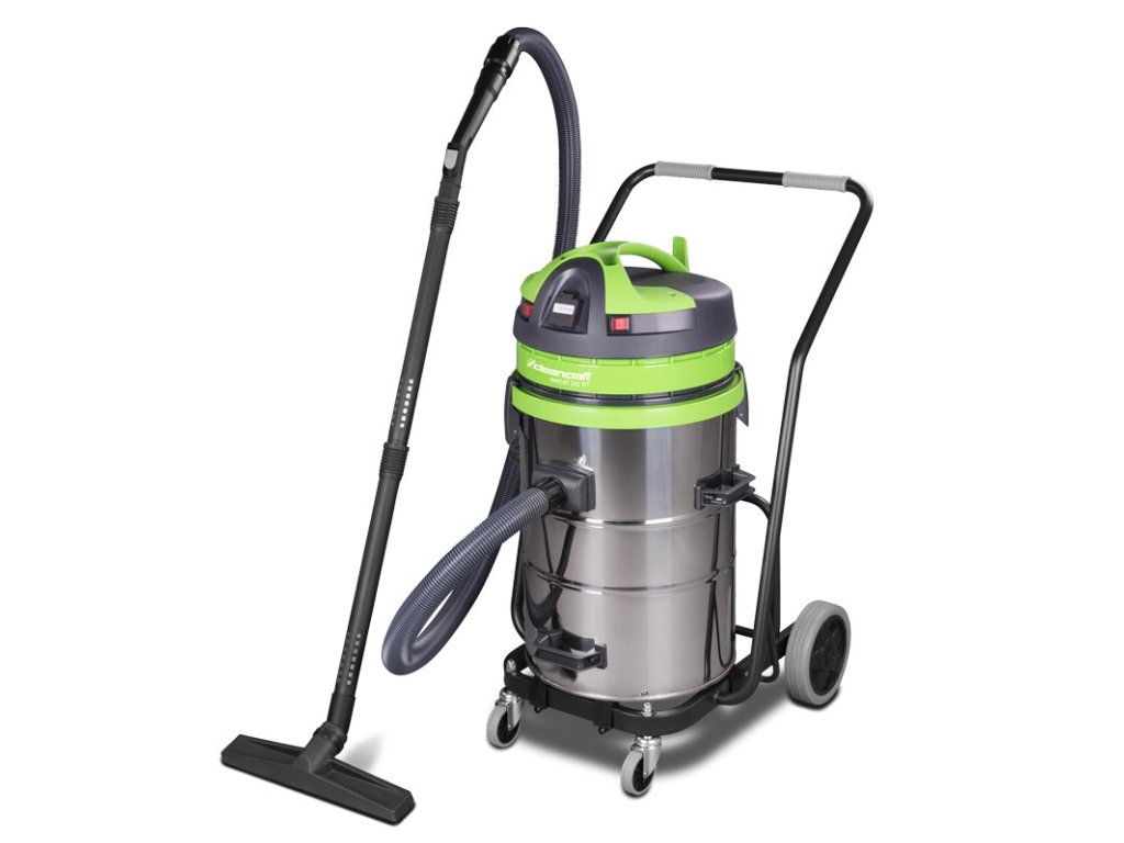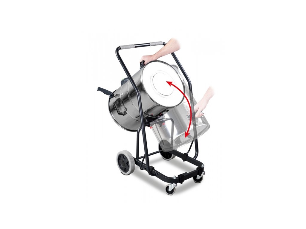 Trojmotorový vysávač určený na vysávanie kvapalín, triesok a ďalších pevných častíc s nerezovou nádobou a naklápacím mechanizmom. Vstavaná zásuvka na pripojenie elektrického náradia bez automatického spustenia pri zapnutí náradia.